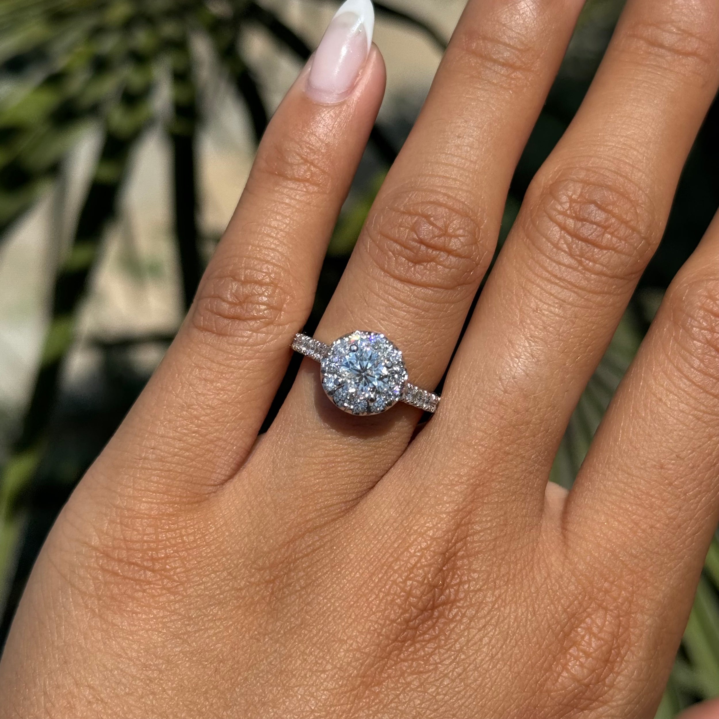 0.70 Carat Natural Round Diamond Halo Cathedral Engagement Ring