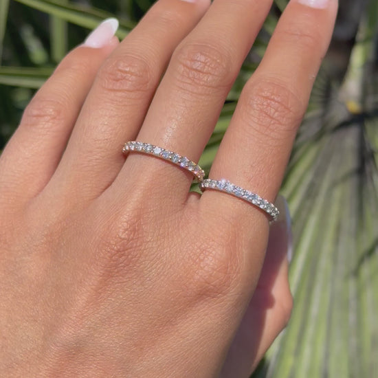 A timeless staple, whether as a wedding band or stackable, this eternity diamond band never misses.